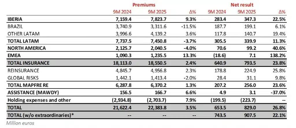 - IBERIA shows a significant increase in the net result to €347 million (+22.5%) and a combined ratio of 95.9% (-2.5 p.p.), thanks to the progress of the Auto and Health businesses.