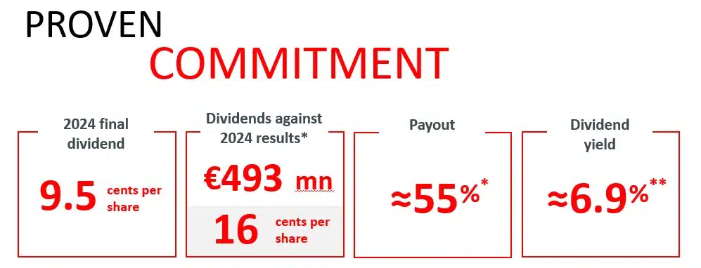 *Total dividends against 2024 fiscal year includes the interim dividend of €0.065 paid in November and a final dividend of €0.095 approved at the AGM on March 14th