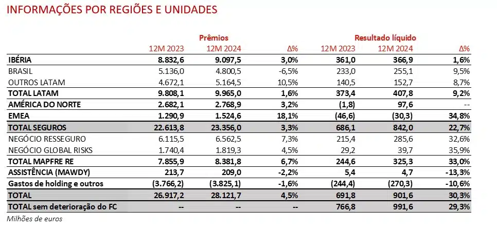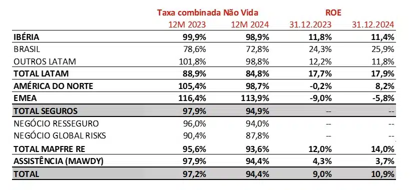 “Estes resultados, os melhores da história, refletem nossa ambição pelo crescimento e pela excelência técnica, fruto da execução do Plano Estratégico. O dividendo atinge um novo máximo histórico e demonstra nosso compromisso com os acionistas. Entramos em 2025 com grande otimismo e com a confiança de continuar gerando valor” afirma Antonio Huertas, presidente da MAPFRE.