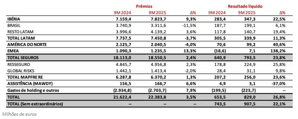 - Os prêmios em IBÉRIA alcançaram 7,824 bilhões (+9,3%), dos quais a Espanha contribuiu com 7,508 bilhões (+10,0%). Em Portugal, os prêmios atingiram 316 milhões.